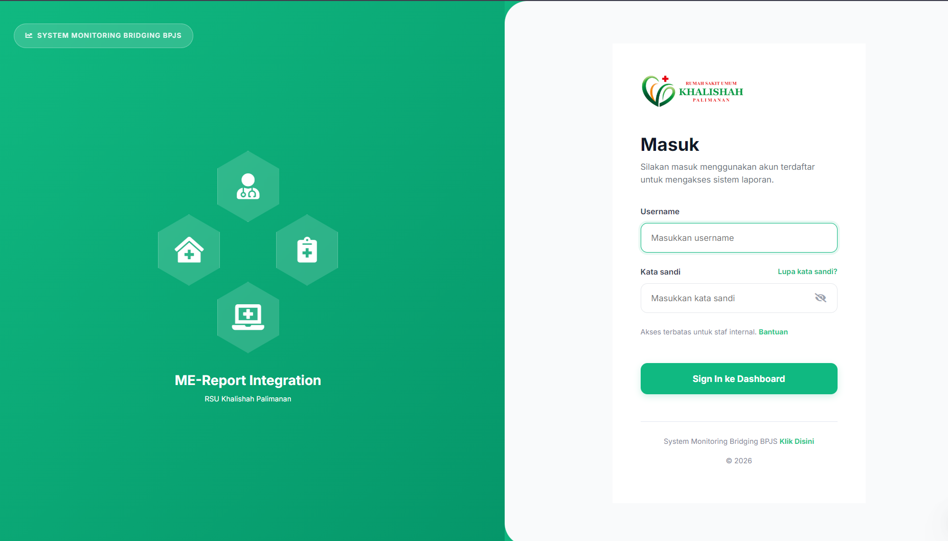 Portal pelengkap integrasi sistem RSU Khalishah untuk manajemen rekap diagnosa dan pelaporan otomatis berbasis web.